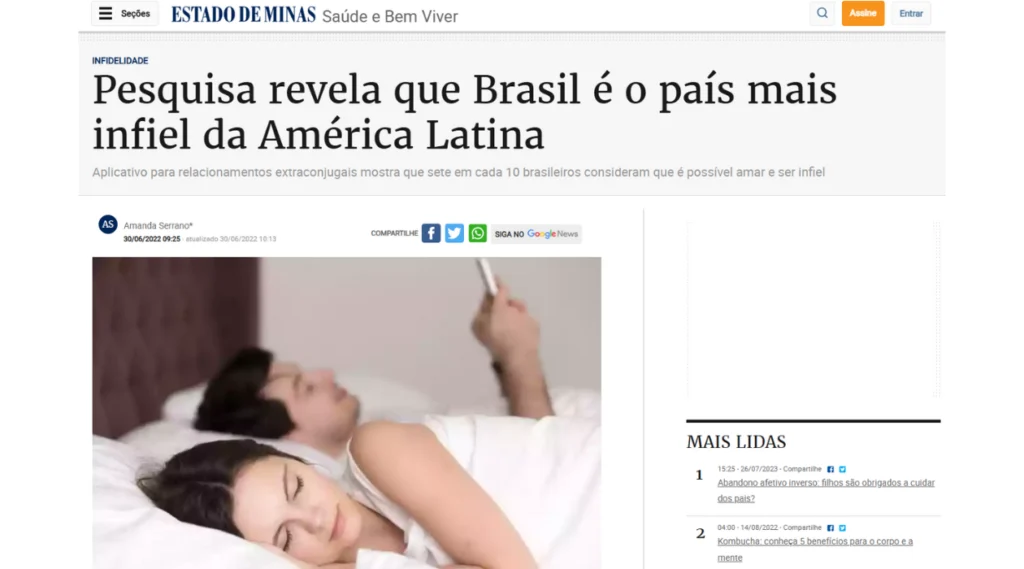 De acordo com um estudo da Universidade de Minas gerais, cerca de 25% dos homens e 15% das mulheres admitem ter traído pelo menos uma vez na vida.
